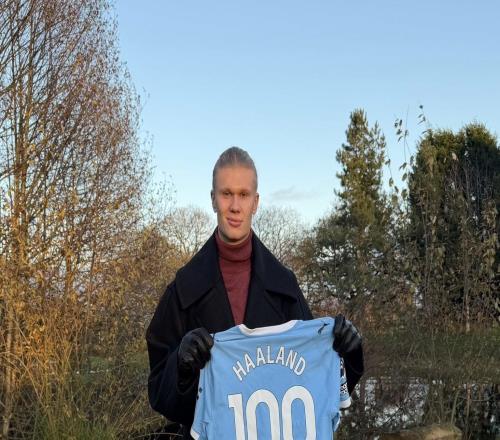 纪念里程碑时刻,哈兰德晒出英超百球纪念球衣