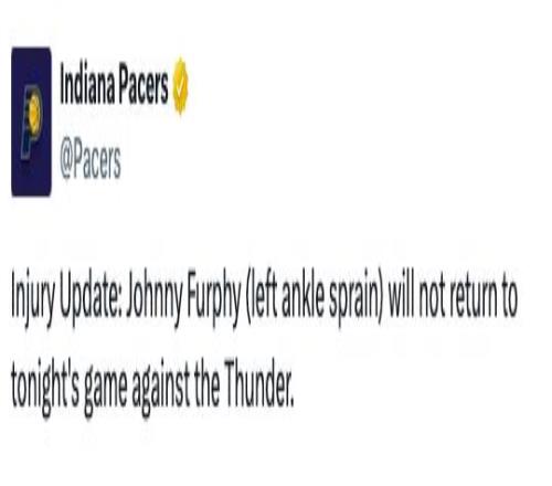 本场比赛步行者接连遭遇打击,先是宣布昆顿·杰克逊因为右腿筋疼痛提前退出比赛,接着又宣布约翰尼·弗菲因为左脚踝扭伤退出比赛。