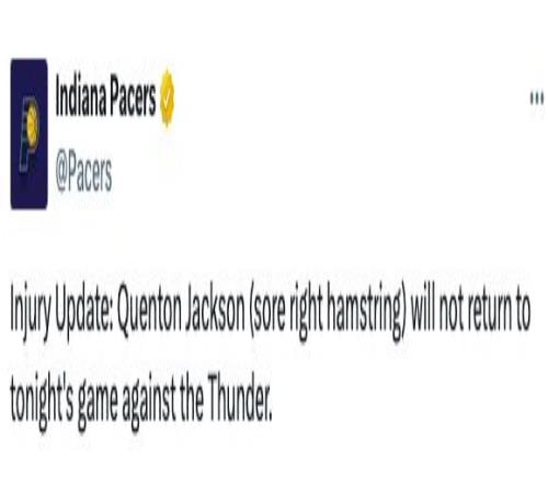 2人伤退!步行者官方宣布杰克逊&弗菲因伤提前退出比赛