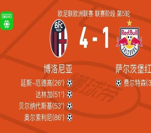 博洛尼亚41大胜萨尔茨堡红牛,奥尔索利尼、贝尔纳代斯基建功